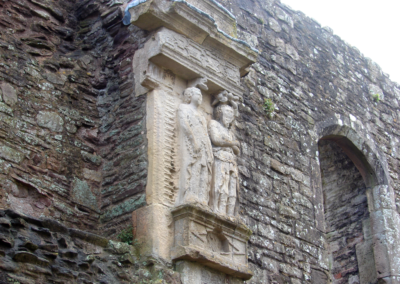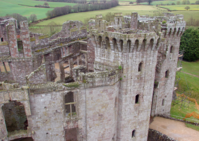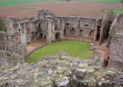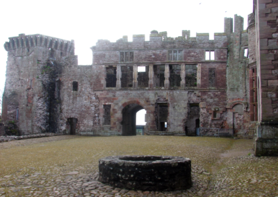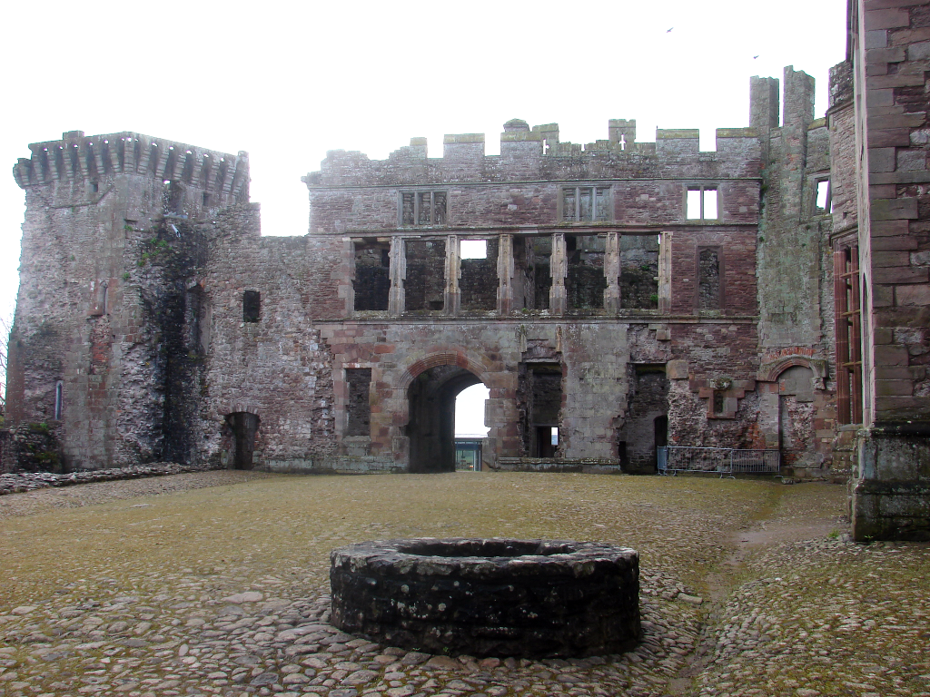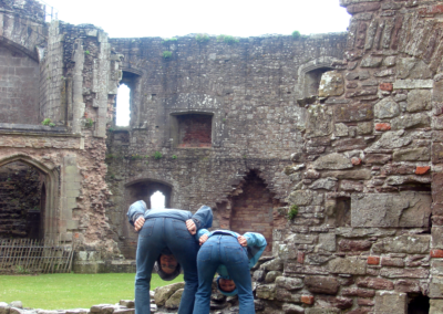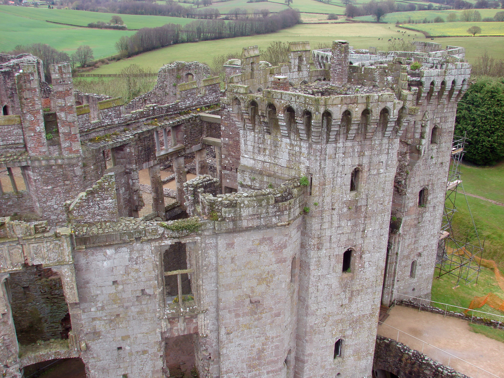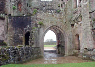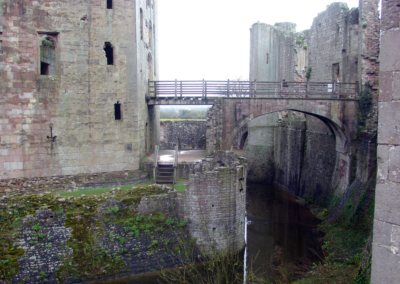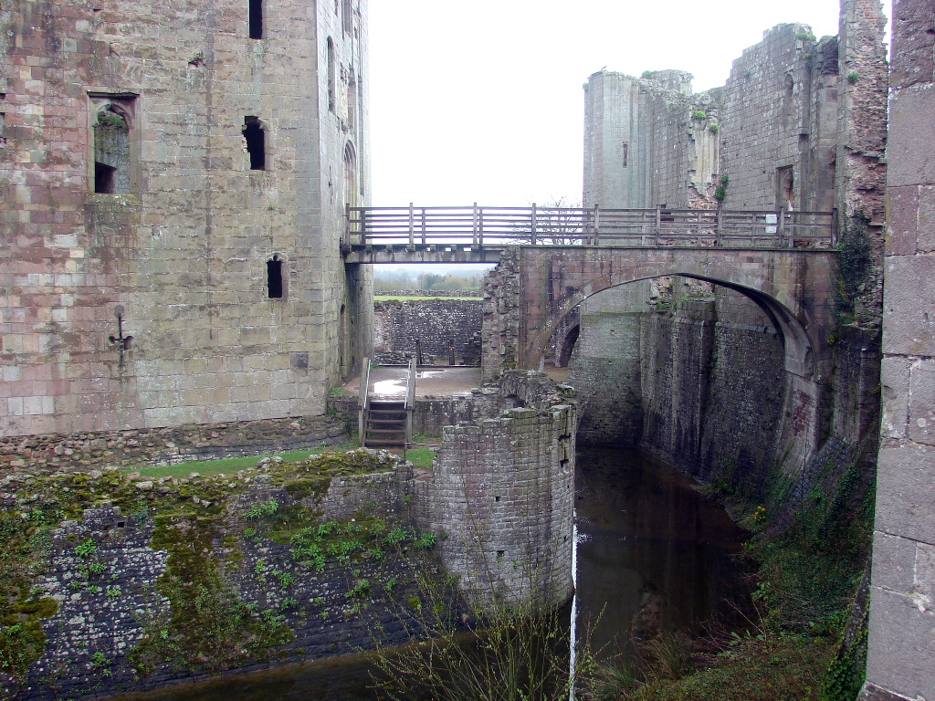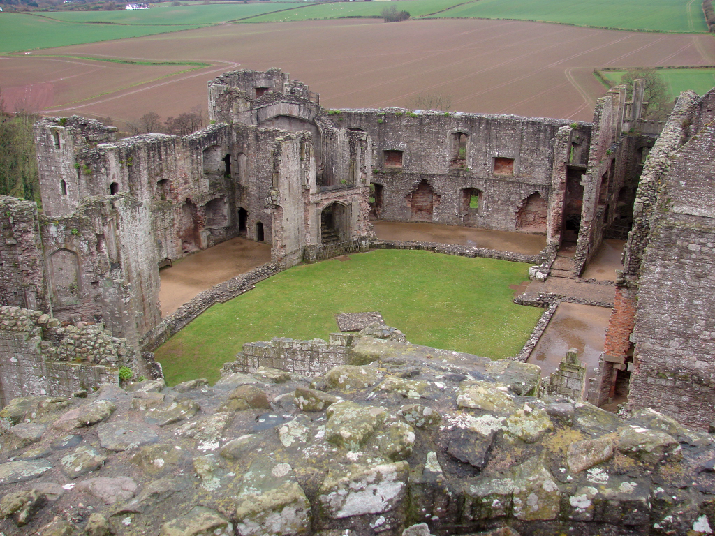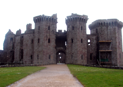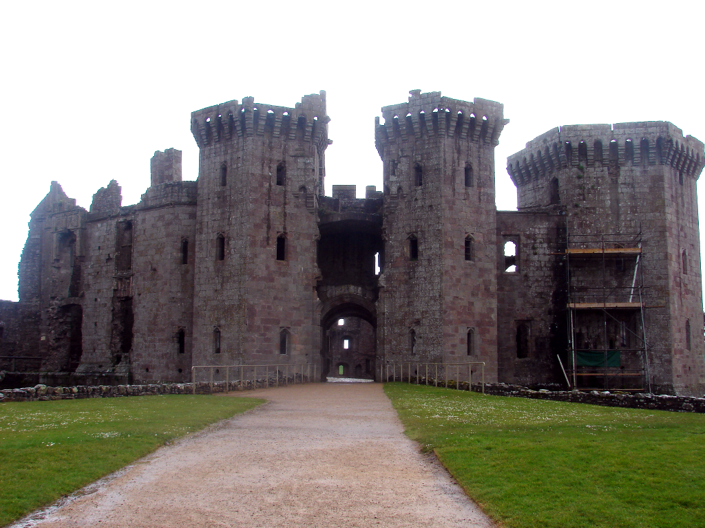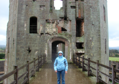 Jako pierwszy na naszej drodze stanął piękny, zruiniały, średniowieczny zamek Raglan położony na południu Walii. Pogoda nie zachwycała, przez co też żywej duszy tam nie było i mogliśmy napawać się pieknem zabytku do woli. Była fosa, potężne komnaty, dziedzińce, wieże, małe okna, studnia z topielichami i wiele innych ciekawostek. Noc spędziliśmy w namiocie na polu kampingowym gdzieś w środku lasu. Było zimno, mokro i niemiło.
