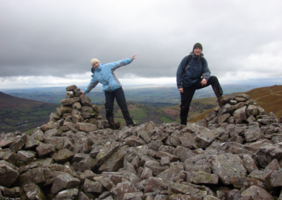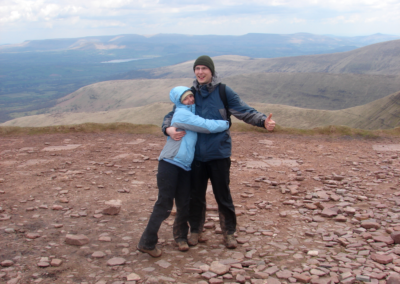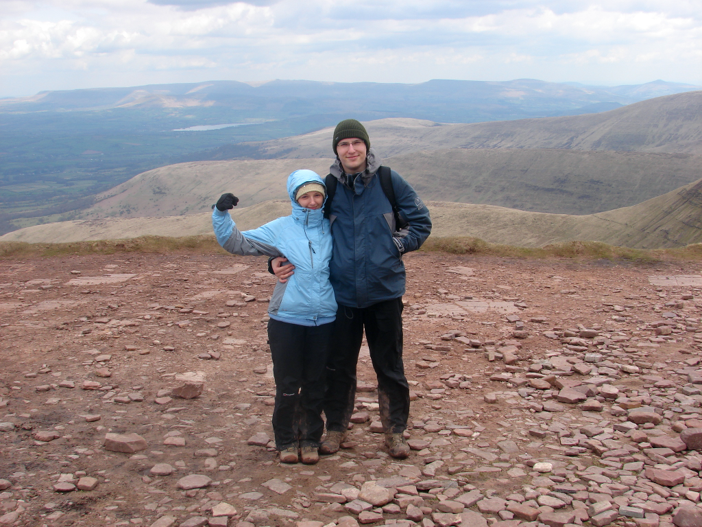 Ostatniego dnia pogoda się do nas usmiechnęła i podarowała nam piękny słoneczny dzień. Pomaszerowaliśmy na najwyższy szczyt Brecon Beacons – Pen-y-Fan 886 m npm. Trasa wiodła żlebem a następnie jego krawędzią. Na szczycie znajdowało się potężne wypłaszczenie z kopcem kamieni. Widoki były naprawdę piękne na niedalekie szczyty. Weszliśmy również na Cribyn 795m npm. Zeszliśmy na parking i z niekłamaną radością pojechaliśmy do domu.