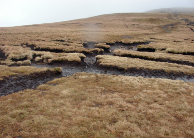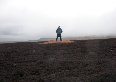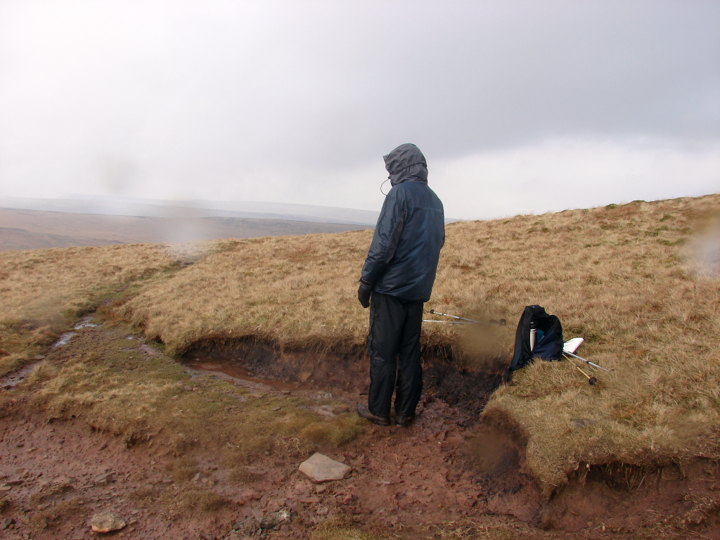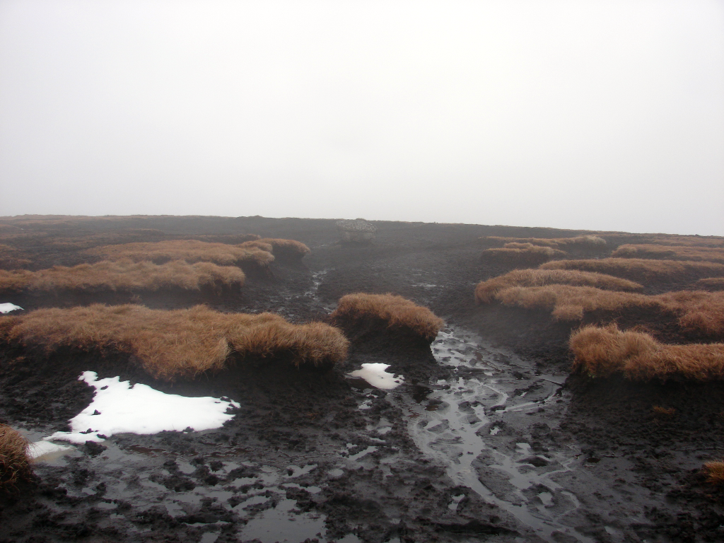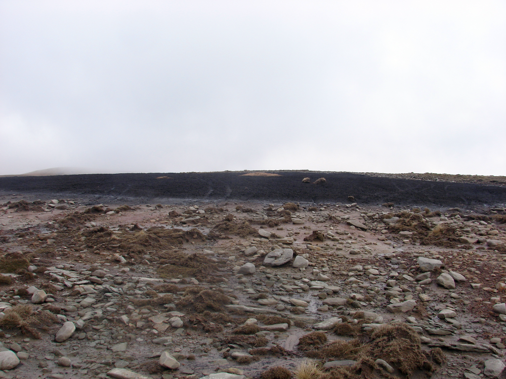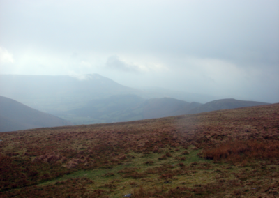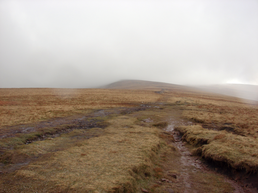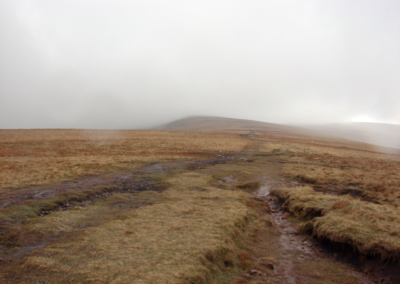 Dnia następnego udaliśmy się w Black Mountains, które są wschodnią częścią Brecon Beacon i ku naszej wielkiej rozpaczy nie przywitały nas radośnie. Praktycznie ciągle lało i wiało a do tego zbocza gór poprzeciane są korytarzami błota, w którym grzęźliśmy do kostek. Plateau szczytów pokryte są czarną mazią, po której chodziliśmy jak po gumie. Oczywiście zdobyliśmy najwyższy szczyt Waun Fach 811 m npm oraz kilka pomniejszych. Jedyne o czym marzyliśmy to namiot i suchy śpiwór! Nie wróciliśmy już na poprzedni kamping ale pojechaliśmy do miejscowości o nazwie Brecon, gdzie jako jedyni rozbiliśmy namiot na zielonej pustyni. To właśnie tutaj zostalismy obrzuceni gradem…. w marcu!